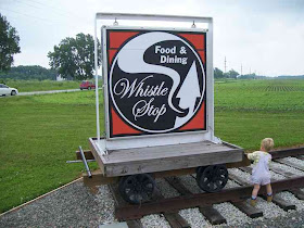 As previous posts have mentioned, we had a toddler at our house for several days and needed to find activities for him. Because he really likes vehicles, we thought a trip to the Whistle Stop Cafe north of Monon would be fun.