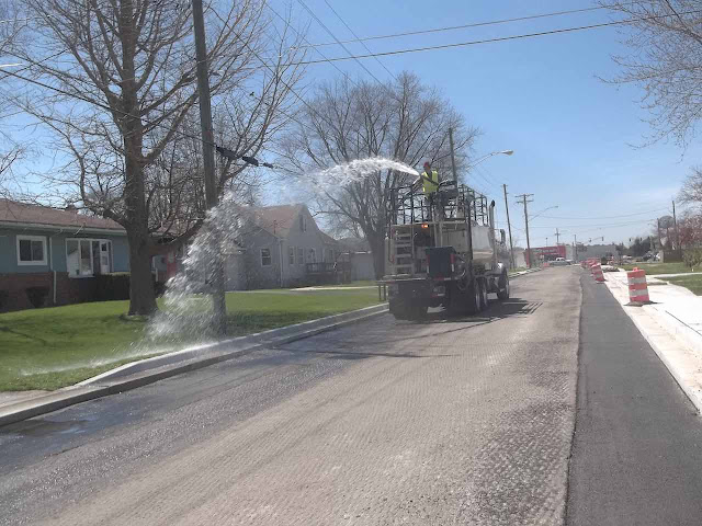The water main project finished the Milroy stretch. The workers had some problems pulling the pipe but seemed to shut down on Thursday. On Monday they were filling the big hole at the west end of Milroy and had repositioned the directional driller south on Sparling.
